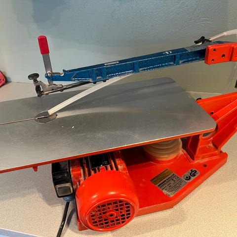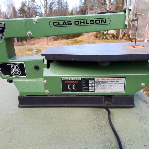 Bandsåg som sågar 100mm höga saker, 330mm djupa delar. Ställbart bord.