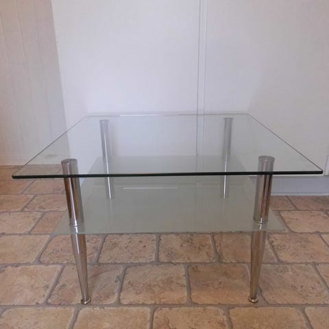 Glasskiva på metallben