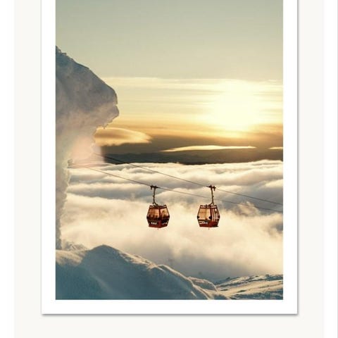 Poster med motiv av en blomsteräng i solnedgång. Bilden visar blandade sommarblommor, bland annat prästkragar och röda blommor, med solnedgång och oskärpa i bakgrunden.
