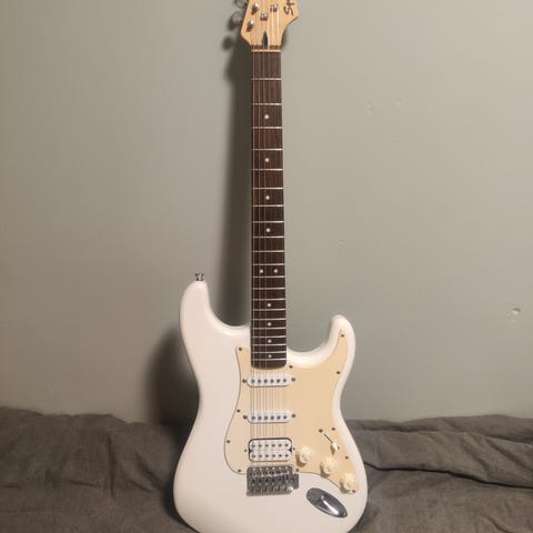 Gitarren låter bra och är i mycket gott skick förutom en liten skråma på framsidan (se bild) alltså inget som påverkar funktionen.