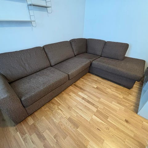 Soffa med divan på höger sida, säljes för 1500kr eller högst budande