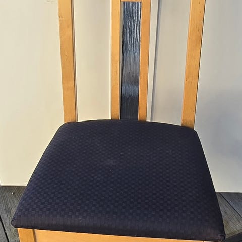 Ena benet har sprickor och sitter löst så stolen behöver limmas+ lite kärlek och omvårdnad så håller den nog i många årtionden till.