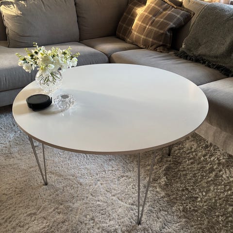 Säljer soffbord som är köpt på Mio. Bordet är 80 cm i diameter och 50 cm högt. Det är i bra skick utan missfärgningar eller skador. Hämtas senast måndag 23/3.