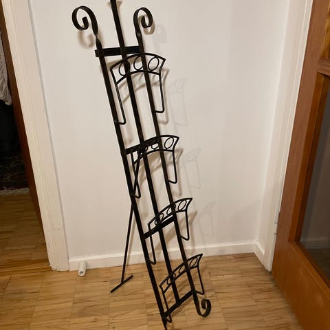 Ikea Skrissel tidningsställ vit metall. Höjd: 78cm, bredd: 33,5cm.