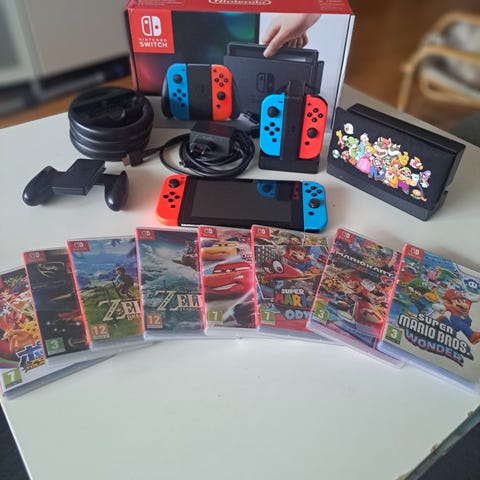 Nintendo Switch, spel, väska, handkontroller