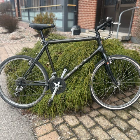 Specialized hybridcykel för man med ramstorlek 56 cm och 28"/700c-hjul. Cykeln har rak styre, flera växlar och fälgbromsar. Passar för pendling och vardagscykling på blandat underlag. Ram och komponenter är anpassade för vuxen manlig cyklist. Färgen är ljus, enligt bilderna. Cykeln har även pakethållare baktill.