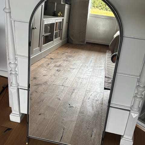 Metallställning som kan användas till tavlor eller som på bilden med spegel