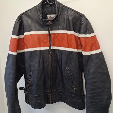 MC jacka i skinn med reklam.