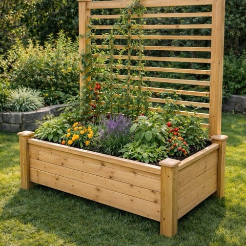 Trälåda pallbox med yttermått cirka 135 x 110 x 90 cm.