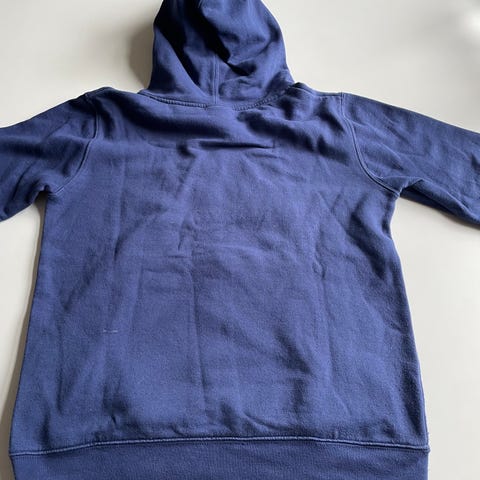 Mörkblå hoodie med sverige-tryck på både fram- och baksida.