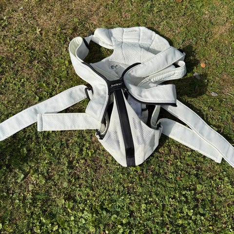 Höftbärare / midjebälte i beige textil med vadderad sits och midjedel. Justerbart midjebälte med spänne för att passa olika midjemått. Avsedd för att bära barn på höften eller framtill, där barnet sitter på den vadderade sitsen. Yttermaterial i tyg med kontrastkant och innerdel i mjukt, vadderat material för ökad komfort. Passar för användning tillsammans med säkerhetsbälte enligt tillverkarens anvisningar på etiketten.