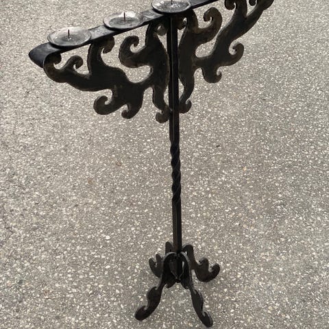 Tuppstake i smide. Design Gustav Ankarcrona. Bra skick, stearinrester. Höjd ca 56 cm, bredd ca 42 cm.