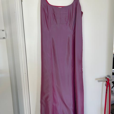Festklänning, längd strax under knäet. Helfodrad, dragkedja bak. Sidenkänsla.