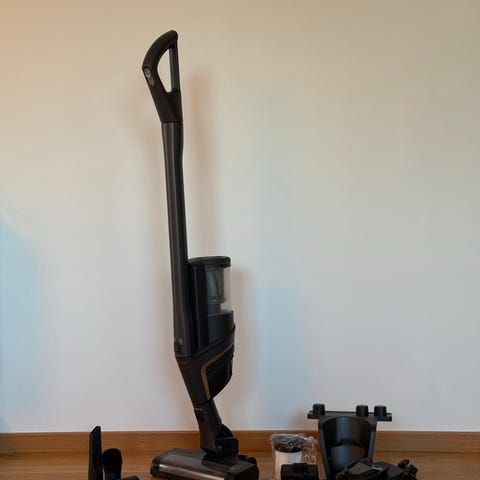 Clas Ohlson HCR 100 handdammsugare i svart utförande. Sladdlös modell med laddningsstation och flera tillbehör, bland annat förlängningsrör och golvmunstycke. Märkeffekt 100 W och batterikapacitet 2000 mAh, 11,1 V DC. Passar för dammsugning av golv, möbler och mindre ytor i hemmet.