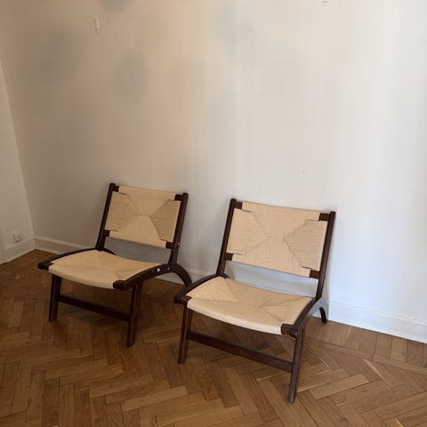 Fin trästol från Ellos i modellen Bell. Stolen är i massiv alm och har en vadderad sits i rotting. Nypris 2000kr / stol. Hämtas på södermalm tidigast 1/4. Säljes pga flytt.
