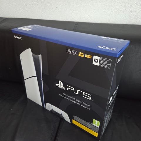 Sony Playstation 5 spelkonsol i vit färg. Konsolen stödjer spel i upp till 4K-upplösning och har inbyggd SSD-lagring för snabba laddningstider. Medföljande DualSense-handkontroll har inbyggd högtalare, haptisk feedback och adaptiva triggers. Konsolen är avsedd för hemmabruk och kan användas för spel, streaming av film och musik samt andra underhållningsappar via internetanslutning.