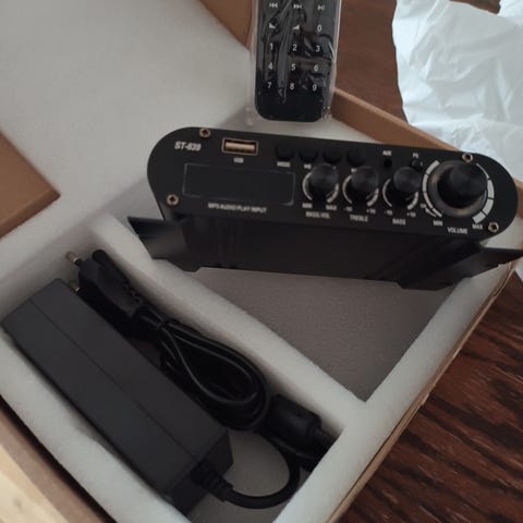 SMSL A50 Pro stereoförstärkare i svart utförande. Kompakt effektförstärkare för stereobruk med frontmonterad volymratt. På baksidan finns högtalarutgångar för två kanaler samt ingångar som bland annat inkluderar HDMI ARC och optisk ingång. Enheten levereras med nätadapter och fjärrkontroll enligt bilderna. Lämplig som förstärkare i ett hembio- eller stereosystem där man vill driva passiva.