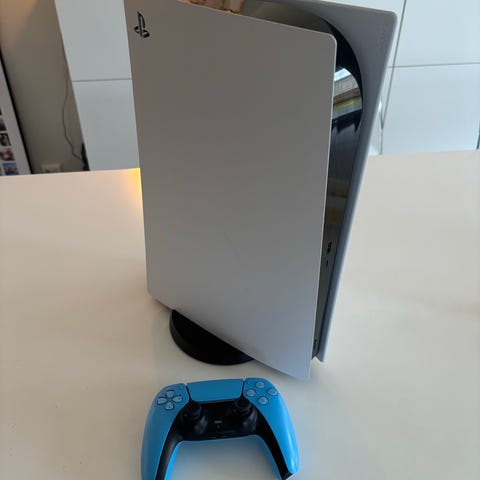 Sony Playstation 5 spelkonsol i vit färg. Konsolen levereras med en Astro Bot Edition Dualsense kontroll. Mycket fint skick.