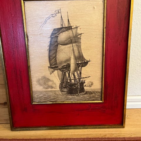 Tavla med familj i roddbåt i guldfärgad ram