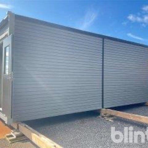TAL fraktcontainer i blå metall. Standard sjöcontainer med dubbeldörr framtill och låsmekanismer i metall. Lämplig för förvaring eller transport av gods och utrustning. Robust konstruktion anpassad för utomhusbruk och hantering med lastbil eller lyftutrustning.