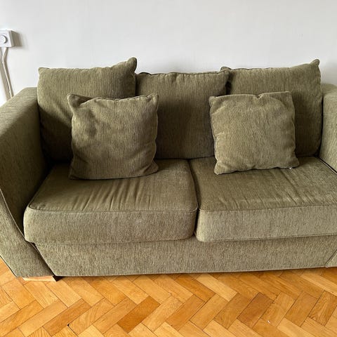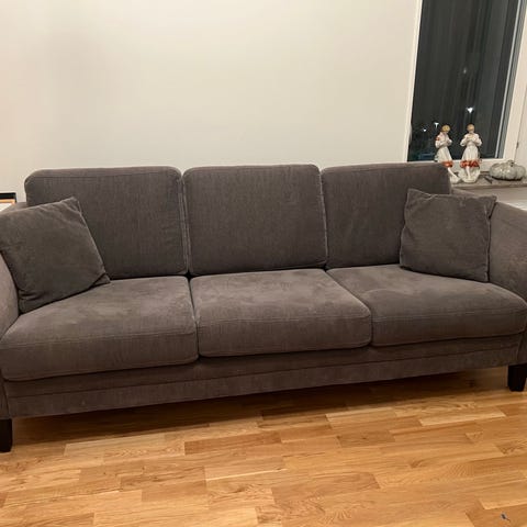 Fin grå/beige soffa från Mio. Fint skick. Rymlig och skön! Se material på bilden.