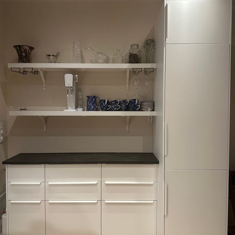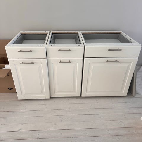 Köksfronter med överskåp och lådfronter i vit färg från IKEAs serie SOLÄR.