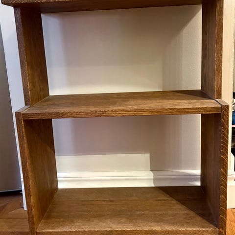 Trähylla i massiv furu. Hyllan är i begagnat skick och har några repor.