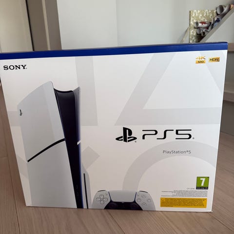 Sony Playstation 5 Standard 1000 GB spelkonsol. Konsolen stödjer spel i hög upplösning och har inbyggd lagring. Levereras i originalkartong enligt bilderna. Lämplig för spel, streaming och underhållning i hemmet.