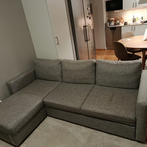 Brun Friheten bäddsoffan under förvaring i gott skick, inga synliga skador eller fläckar och fel . Fullt funkar utmärkt