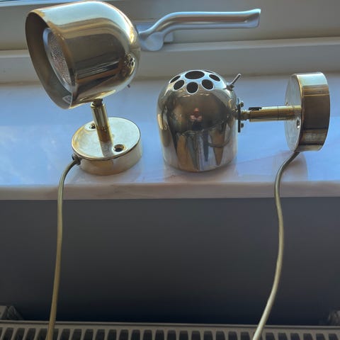 Har 4 st underbara vägglampor i råmässing från PR home. Du får med de stora glödlamporna på köpet! Jag kan skicka fler bilder om så önskas