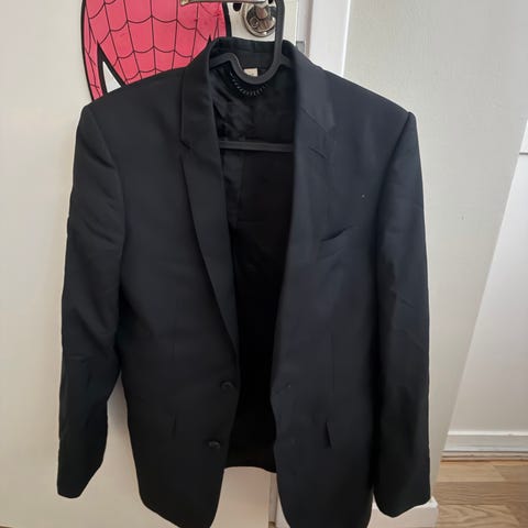 Svart kavaj från Dressmann säljes. Kavajen är endast använd två gånger till en tonåring med smal kroppsbyggnad. Vi har katt. Rökfritt hem.