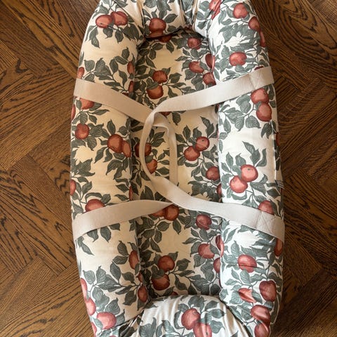 Babynest i grå färg med stabil struktur - bättre än de mjuka babynests när man ska flytta runt kiddo.