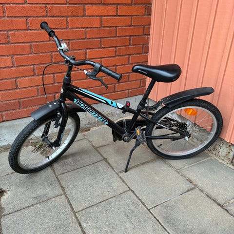 Barncykel med 20" hjul i svart färg. Utrustad med handbroms fram, reflexer och kedjeskydd. Passar barn som behöver en cykel i 20-tumsstorlek för vardagscykling och lek.