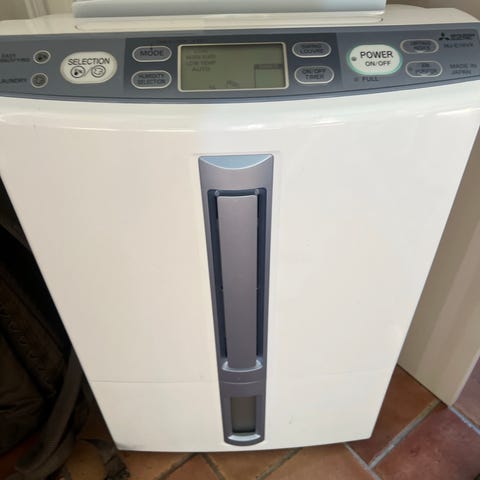 Luftrenare i vit färg med digital display och touchknappar på ovansidan. Utrustad med utbytbara filter som nås via en lucka på framsidan. Enheten har bärhandtag på baksidan för enklare förflyttning och luftintag/utsläpp via