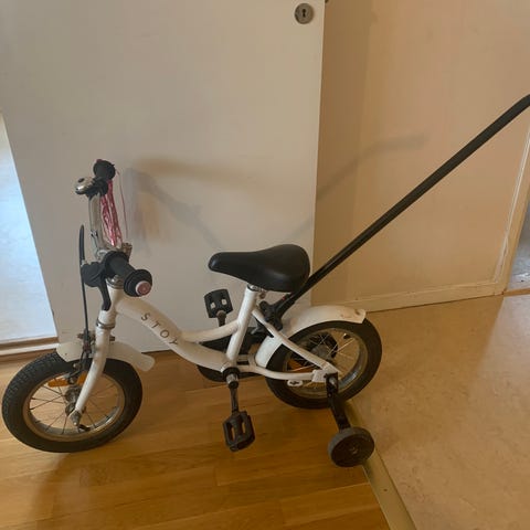 Barncykel med handbromsar och stödhjul - 12 tum finns på Kungsholmen. Säljes i befintligt skick.