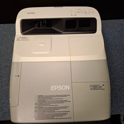 vägg- eller takmontering. Enheten har inbyggda reglage och anslutningar på sidan samt justerbart monteringsstativ. Passar för projicering i mötesrum, klassrum eller andra miljöer där kort projiceringsavstånd önskas. Vit plastkonstruktion med integrerad hållare/fäste för fast installation.