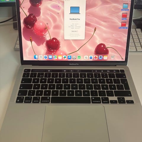Säljer en MacBook Pro med M1-chip. Laptopen har varit i fint skick, utan några repor eller andra skador – förutom en spricka i skärmen efter en fallolycka. Det yttre skärmen är hel, men det är en synlig skada på displayen. Perfekt för dig som kan laga skärmen eller vill använda den som den är. Inga andra problem. Finns kvitto och original lådan.Kontakta vid intresse