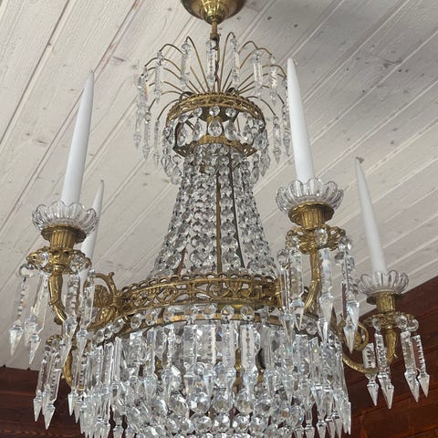 Kristallkrona i gustaviansk stil i bra skick. Kronan har måtten: