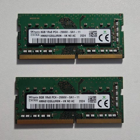RAM-minne av typen DDR4 med kapacitet 16 GB per modul, hastighet 3200 MHz (PC4-3200AA).