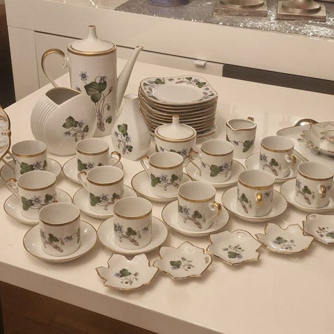 Välhållna och i mycket fint skick men små naggar i tre koppar, ett fat och en assiett, därav priset, se bilder.