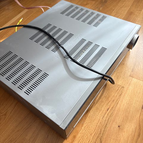 Harman Kardon hk440 Vxi Förstärkare. Bra yttre skick. Förstärkaren fungerar och låter bra men sprakar lite när man vrider på volymratten. När den är still hörs inget. Möjligt att den behöver rengöras invändigt.