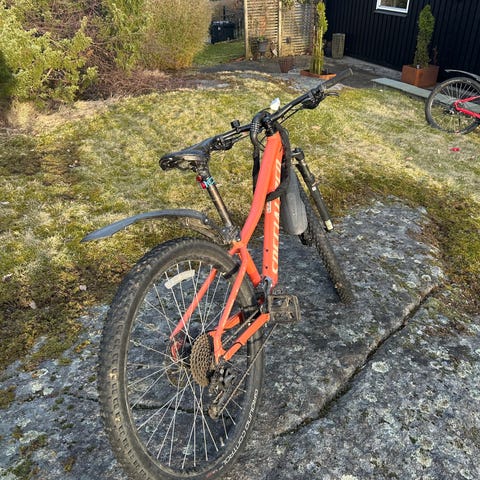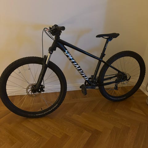 Specialized mountainbike för unisex med ramstorlek 48 cm och 24" hjul. Cykeln har en grön ram med svart sadel och styre. Utrustad med terrängdäck anpassade för varierande underlag. Passar för vardagscykling och enklare turer i skog och mark.