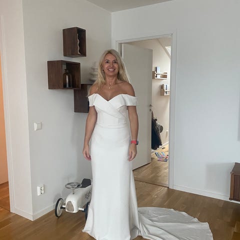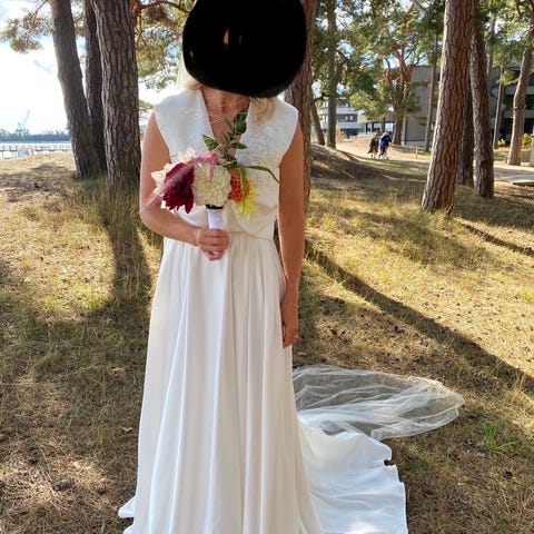Brudklänning i vit chiffong för dam i storlek S.