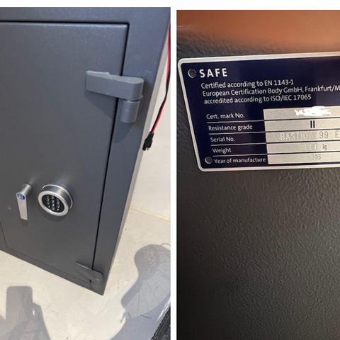 Secureline dokumentskåp brandklass 120 P enl NT Fire 017 med kodlås. Inköpt 2008 nypris ca 20 000:-. vikt ca 450kg.