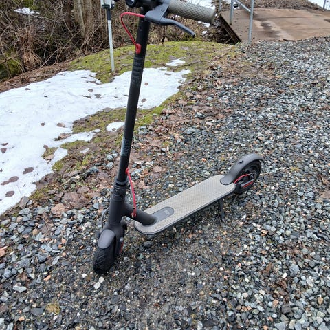 Den har luftfyllda däck. Digital display som visar hastighet och batterinivå.
