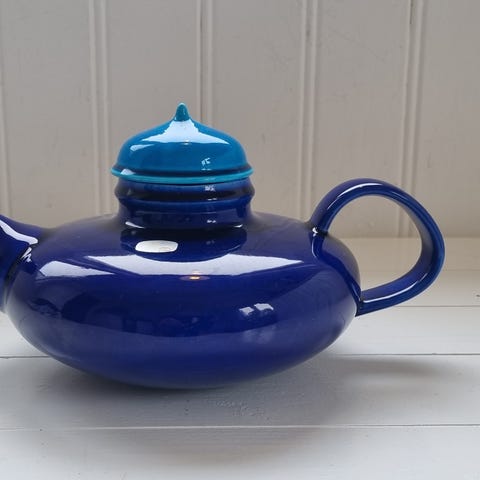 Vintage - Blå o vit tekanna Majolika Jugend & Art Noveau 1910 - 1920-tal