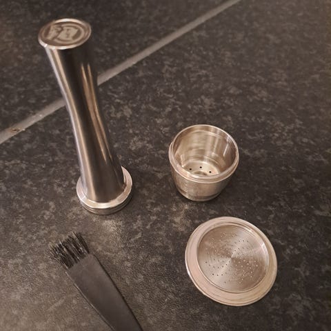 Ställ för kaffekapslar i metall, silverfärgat utförande. Stället är utformat som en roterande hållare med flera vertikala fack för förvaring av kapslar. Passar att ha på köksbänk för organiserad förvaring av kaffekapslar eller liknande små kapslar. Rymmer 40 kaffekapslar
