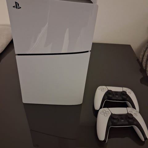 Sony Playstation 5 spelkonsol i vit färg. 2 handkontroller. Använd ett fåtal gånger. Ca 8 månader gammalt. Kvitto finns.