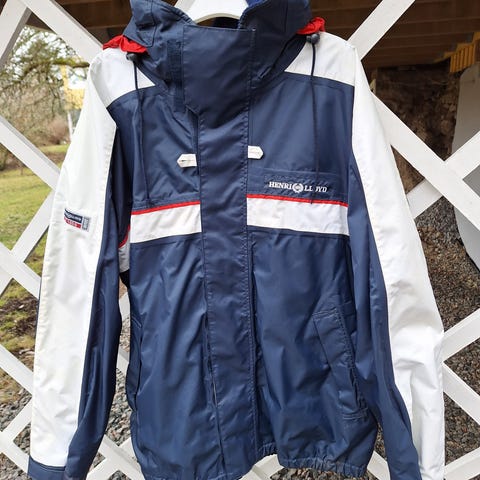 Seglarjacka från ca 2018 och endast använd några gånger. Då använd vid bryggarbete och regnigt väder. Segelbåten såldes tyvärr 2018 också.
