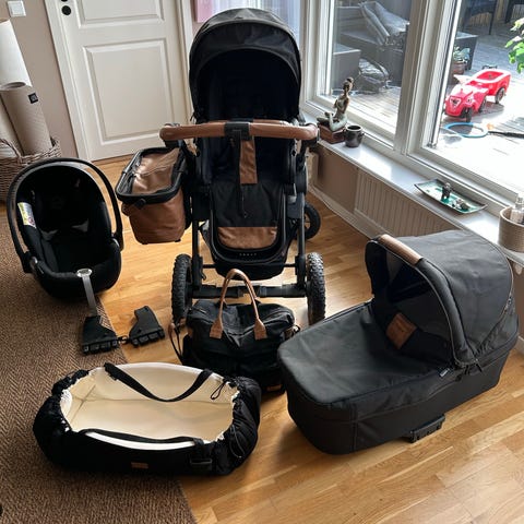 Allt köpt nytt våren 2023, använt från juli 2023. Mycket fint skick. Endast mindre bruksspår i form av lätt skav på chassit och liggdelen från i- och urlastning ur bil.